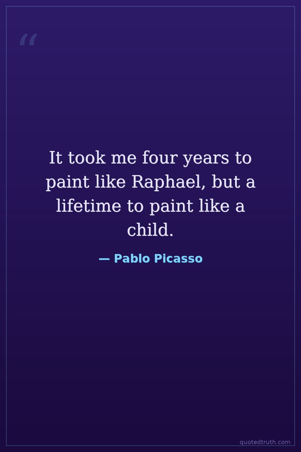 It took me four years to paint like Raphael, but a lifetime to paint like a child.