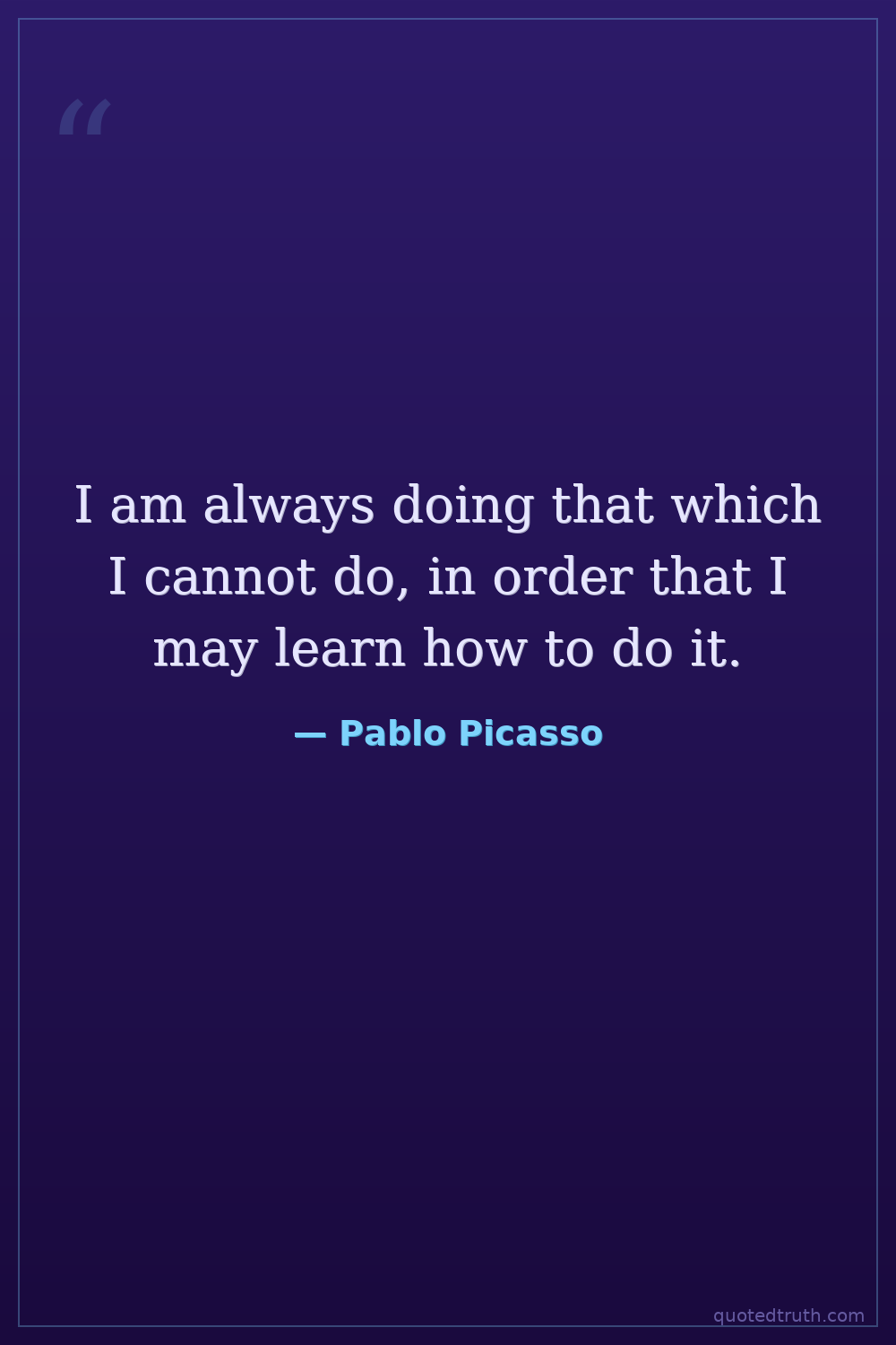I am always doing that which I cannot do, in order that I may learn how to do it.