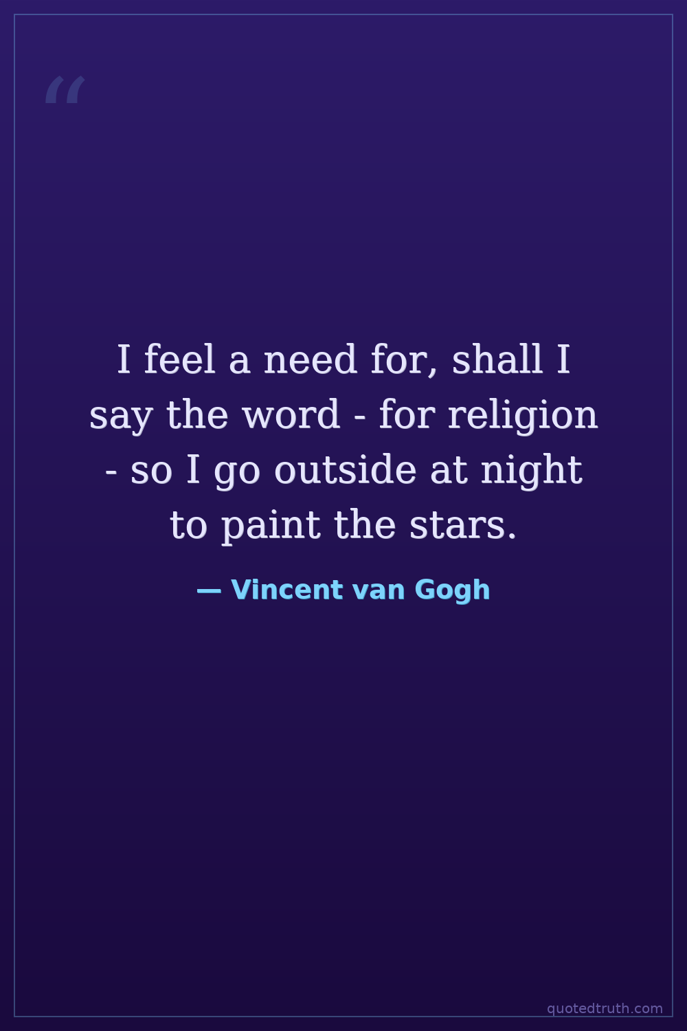 I feel a need for, shall I say the word - for religion - so I go outside at night to paint the stars.