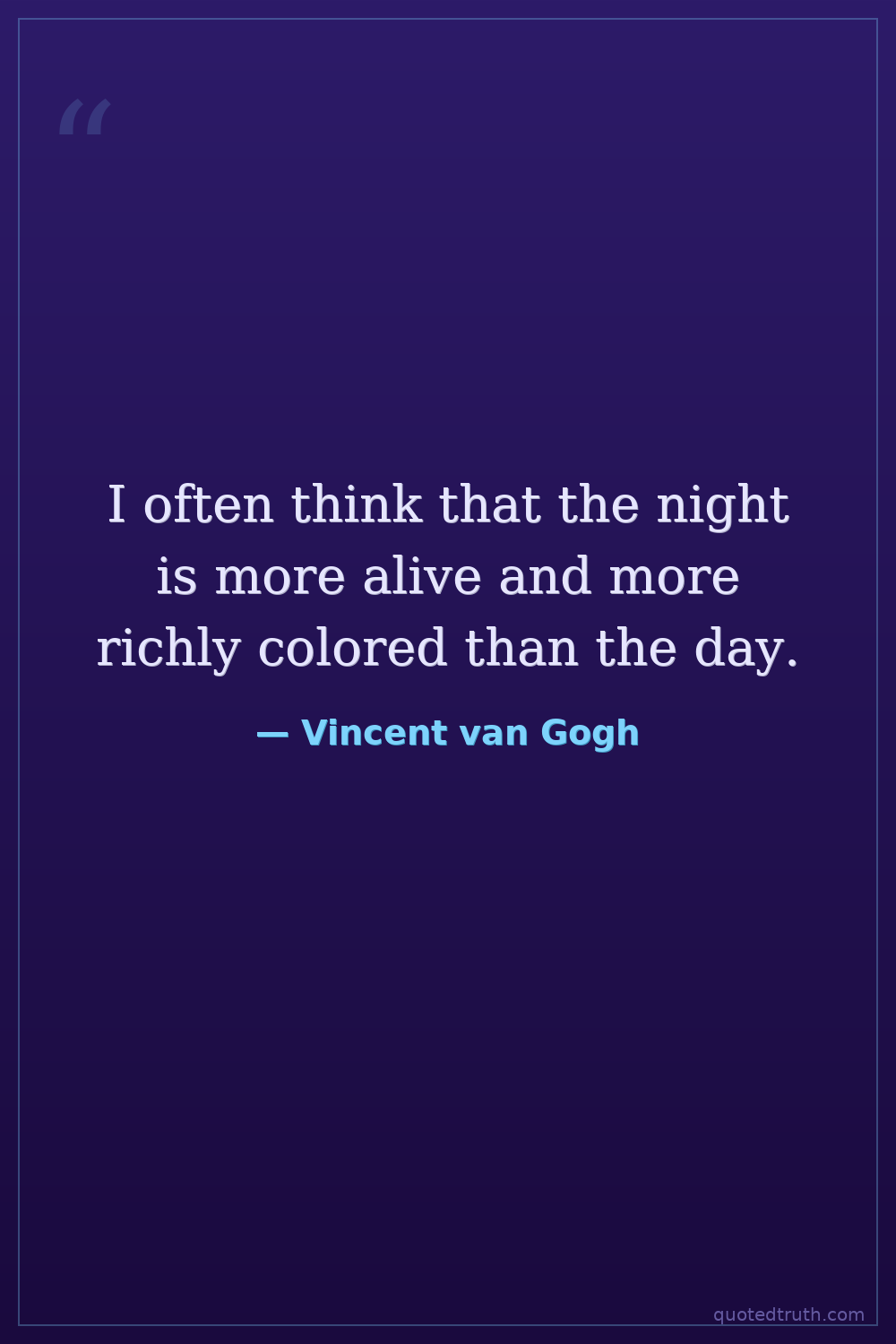 I often think that the night is more alive and more richly colored than the day.
