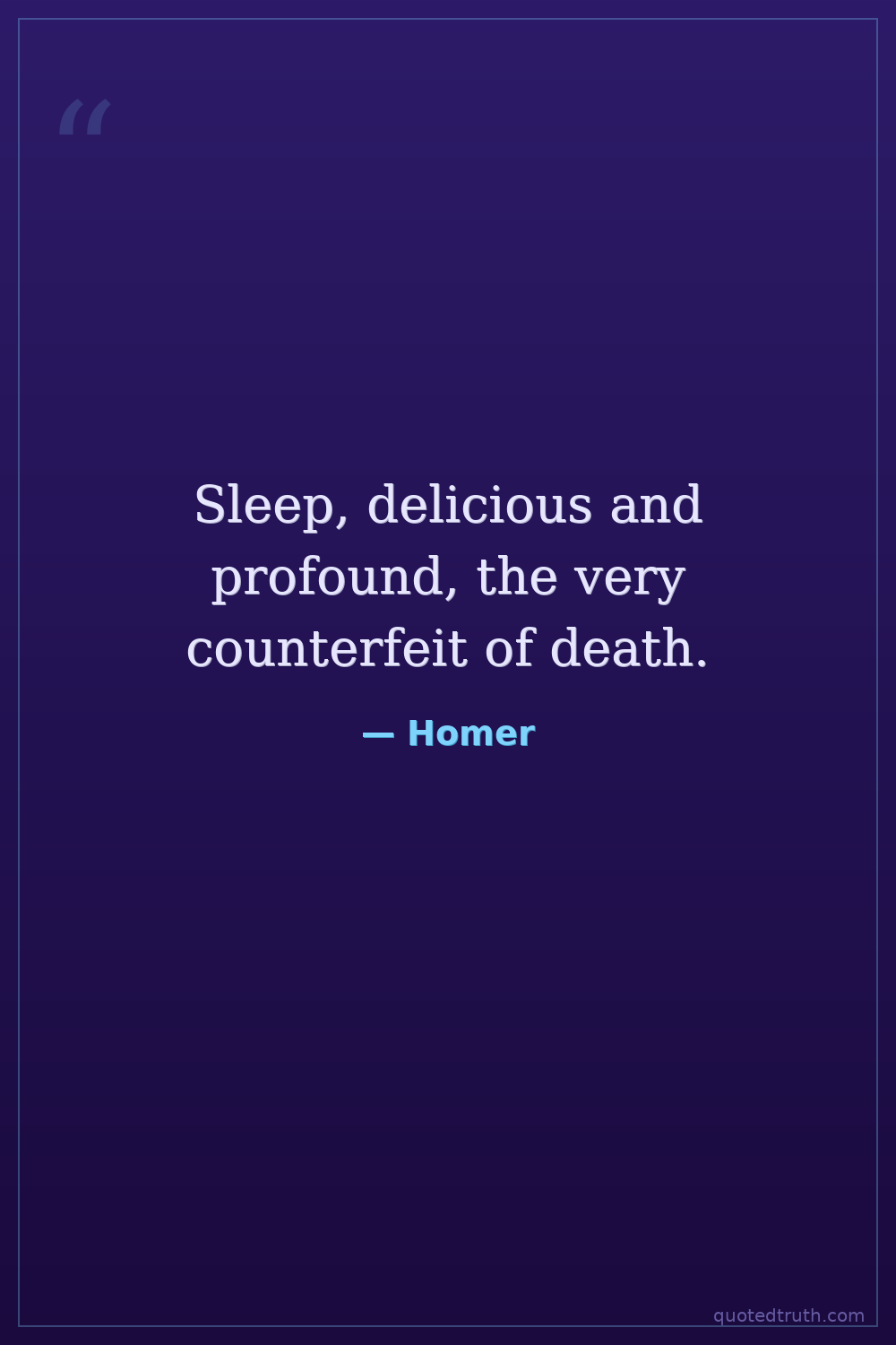 Sleep, delicious and profound, the very counterfeit of death.