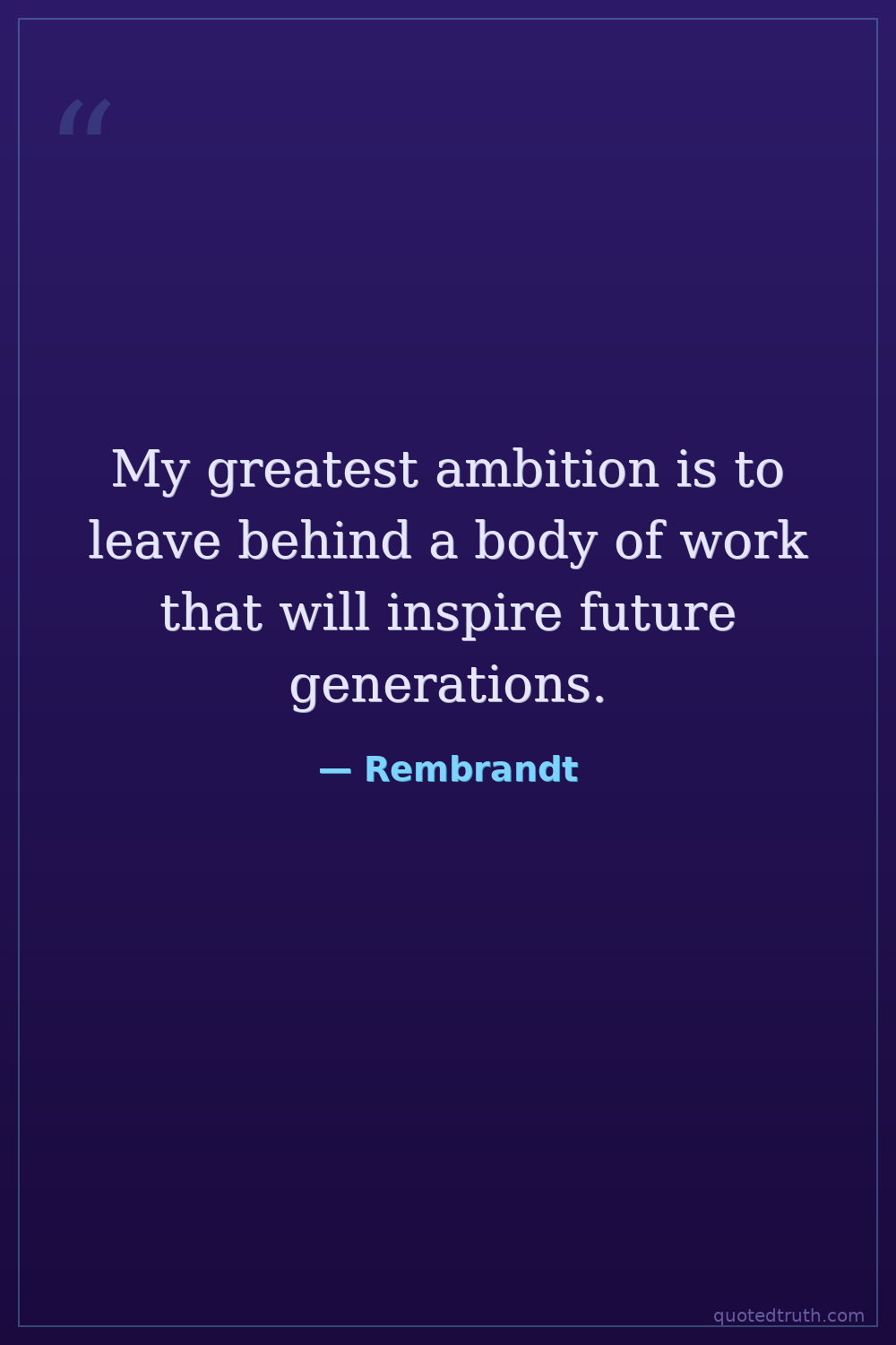 My greatest ambition is to leave behind a body of work that will inspire future generations.