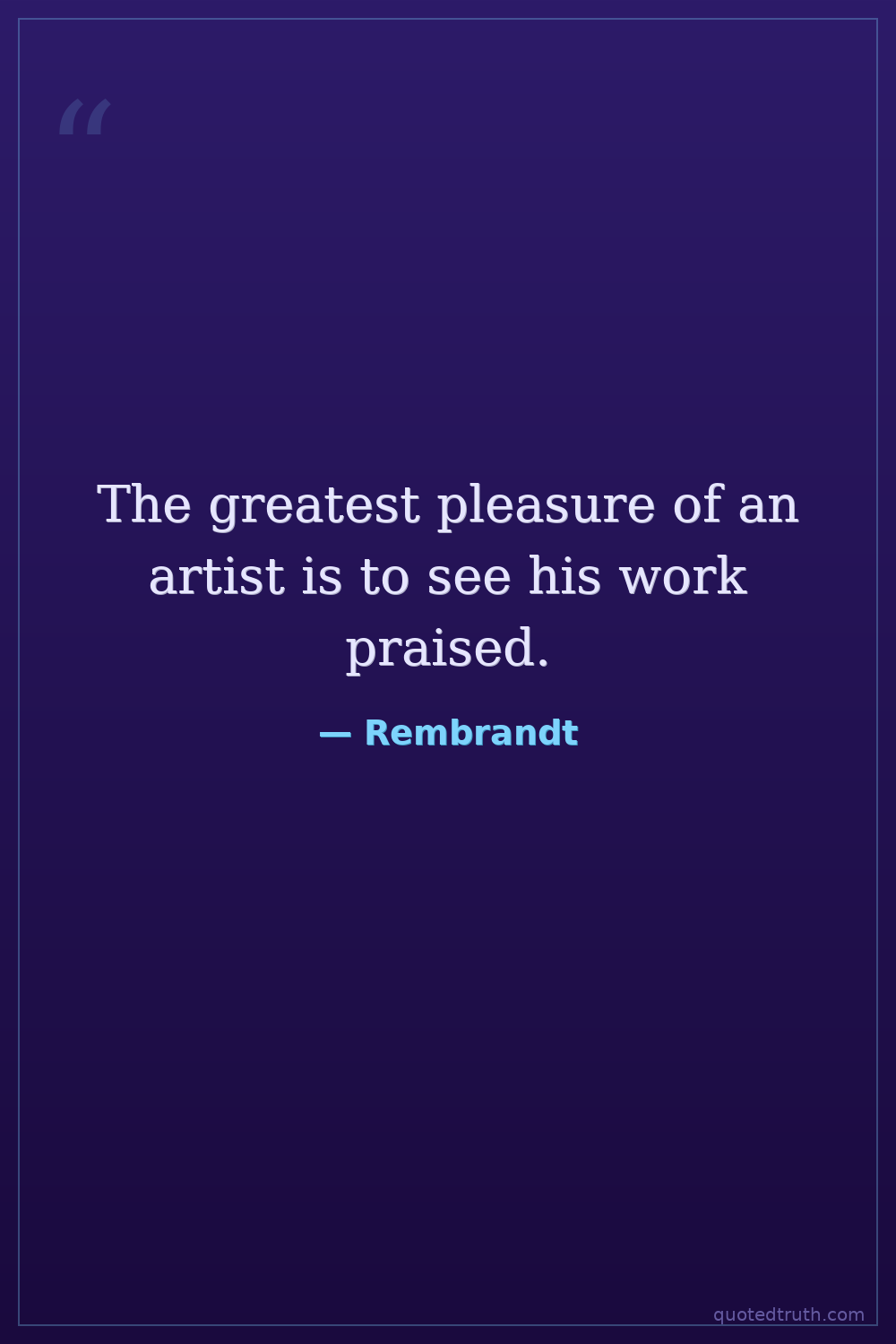 The greatest pleasure of an artist is to see his work praised.