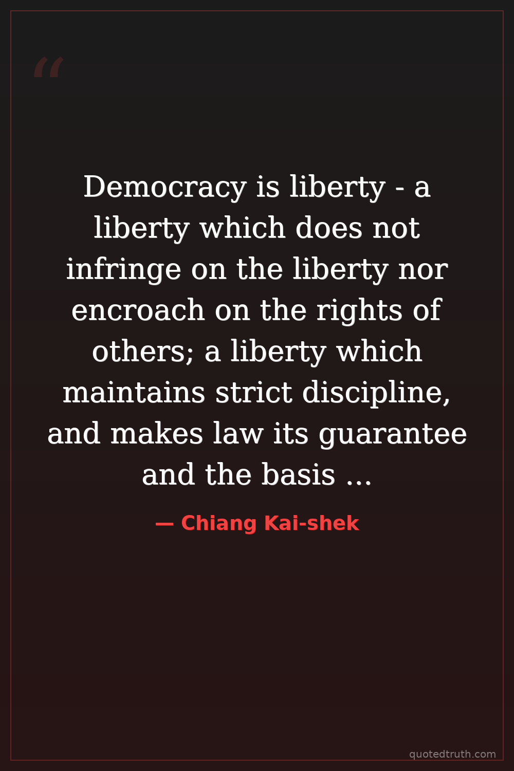 Democracy is liberty - a liberty which does not infringe on the liberty nor encroach on the rights of others; a liberty which maintains strict discipline, and makes law its guarantee and the basis of its exercise. This alone is true liberty; this alone can produce true democracy.
