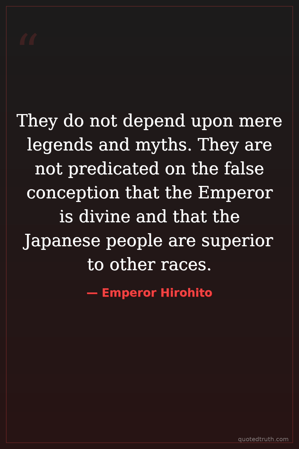 They do not depend upon mere legends and myths. They are not predicated on the false conception that the Emperor is divine and that the Japanese people are superior to other races.