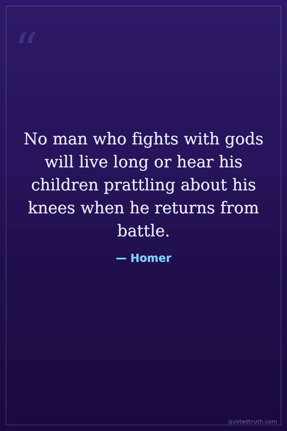 No man who fights with gods will live long or hear his children prattling about his knees when he returns from battle.