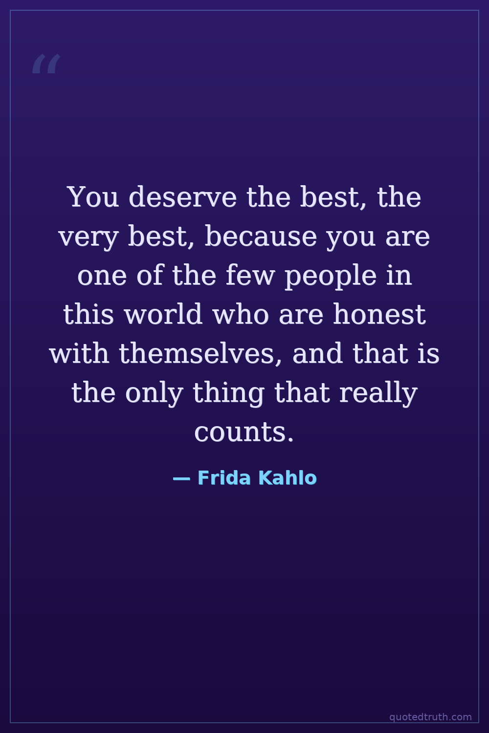 You deserve the best, the very best, because you are one of the few people in this world who are honest with themselves, and that is the only thing that really counts.
