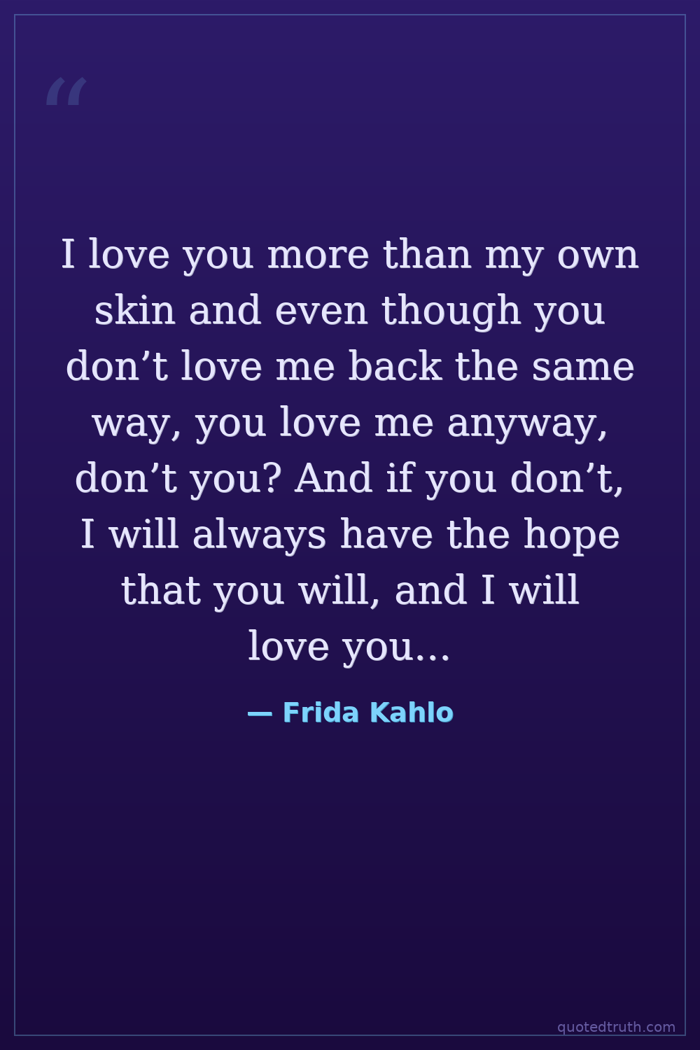 I love you more than my own skin and even though you don’t love me back the same way, you love me anyway, don’t you? And if you don’t, I will always have the hope that you will, and I will love you anyway.