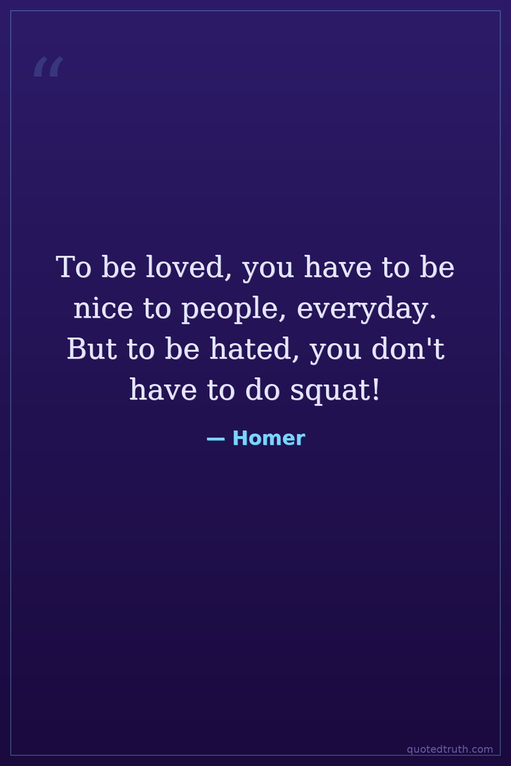 To be loved, you have to be nice to people, everyday. But to be hated, you don't have to do squat!