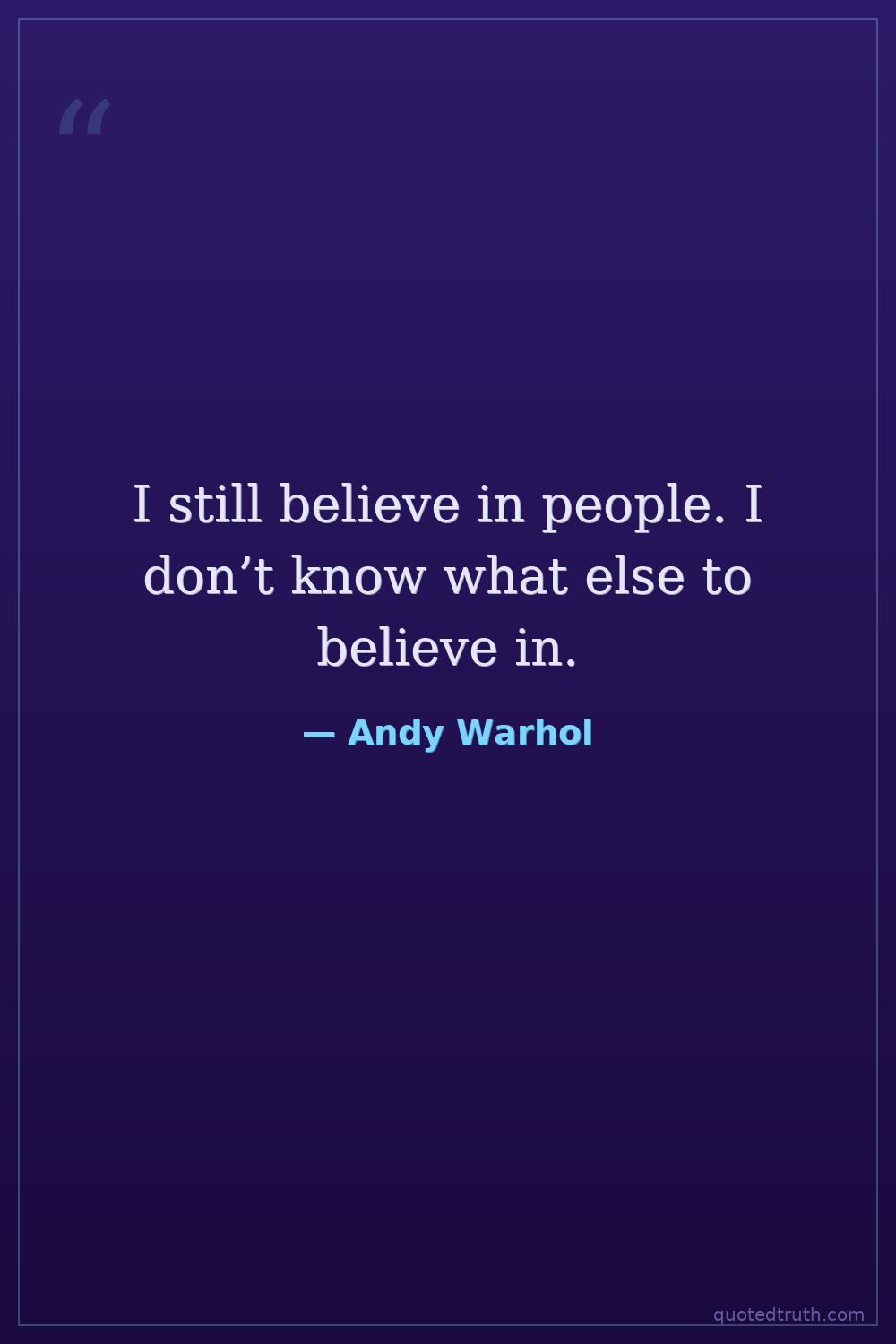 I still believe in people. I don’t know what else to believe in.