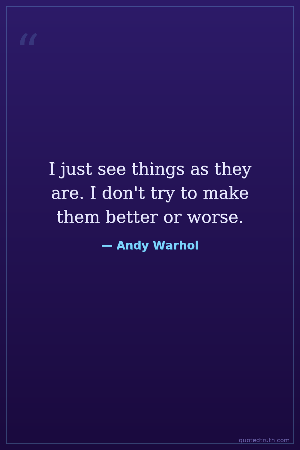 I just see things as they are. I don't try to make them better or worse.