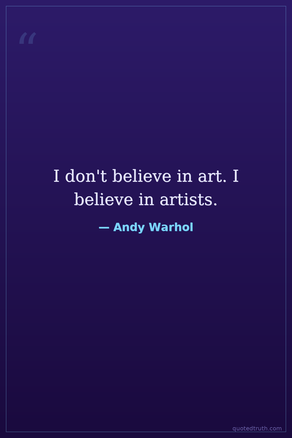 I don't believe in art. I believe in artists.