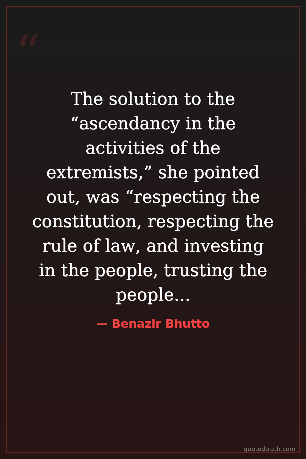 The solution to the “ascendancy in the activities of the extremists,” she pointed out, was “respecting the constitution, respecting the rule of law, and investing in the people, trusting the people, and allowing the people to determine their future.”