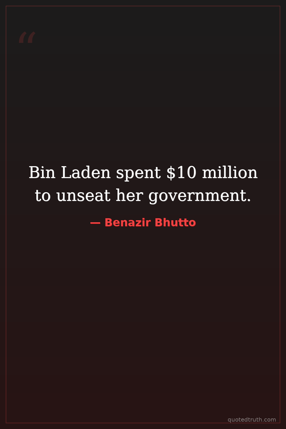 Bin Laden spent $10 million to unseat her government.