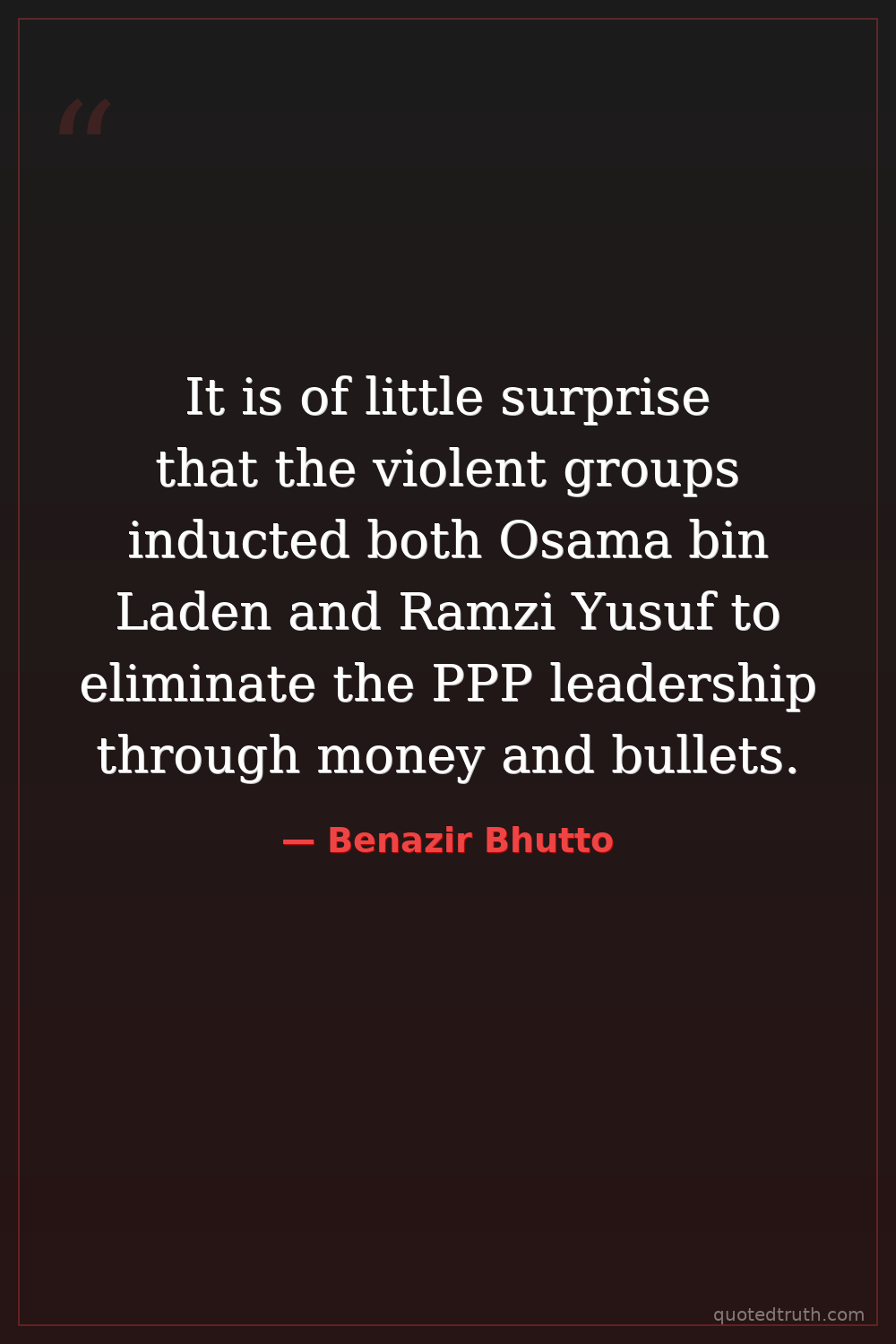 It is of little surprise that the violent groups inducted both Osama bin Laden and Ramzi Yusuf to eliminate the PPP leadership through money and bullets.