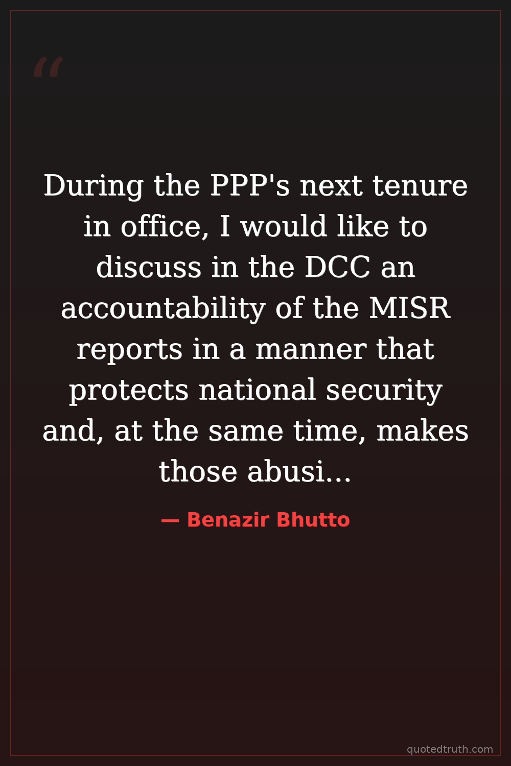 During the PPP's next tenure in office, I would like to discuss in the DCC an accountability of the MISR reports in a manner that protects national security and, at the same time, makes those abusing the system accountable.