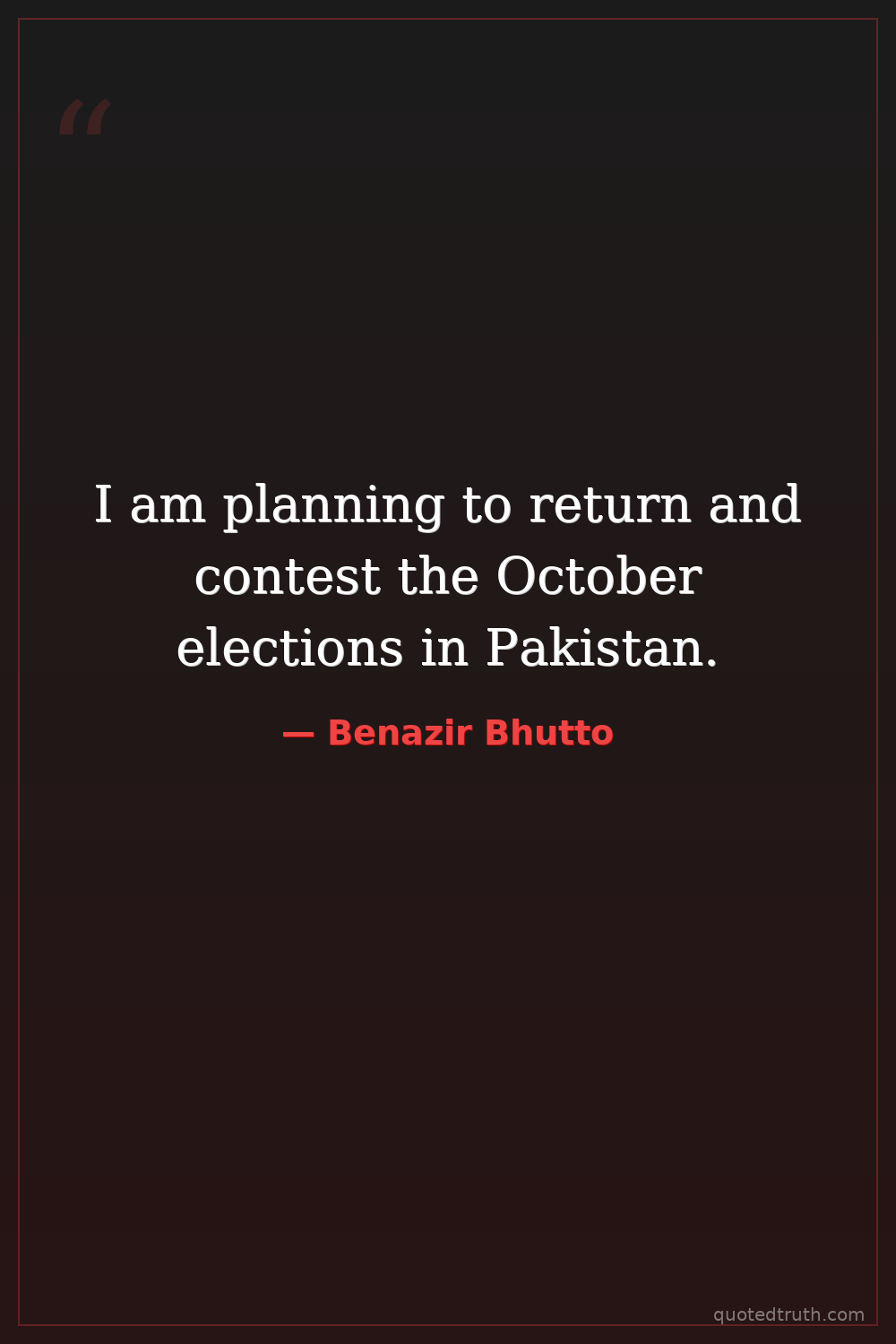 I am planning to return and contest the October elections in Pakistan.