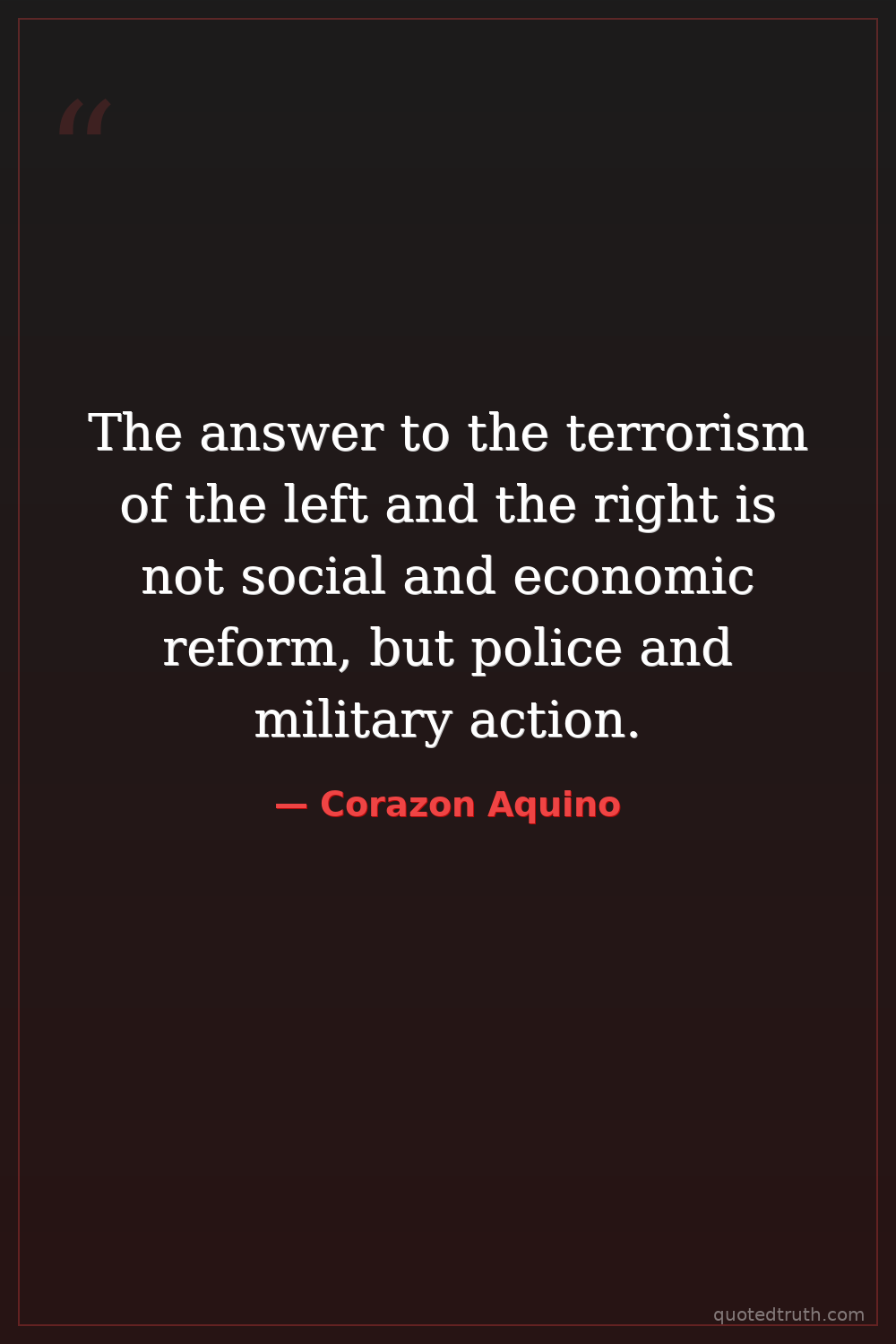 The answer to the terrorism of the left and the right is not social and economic reform, but police and military action.