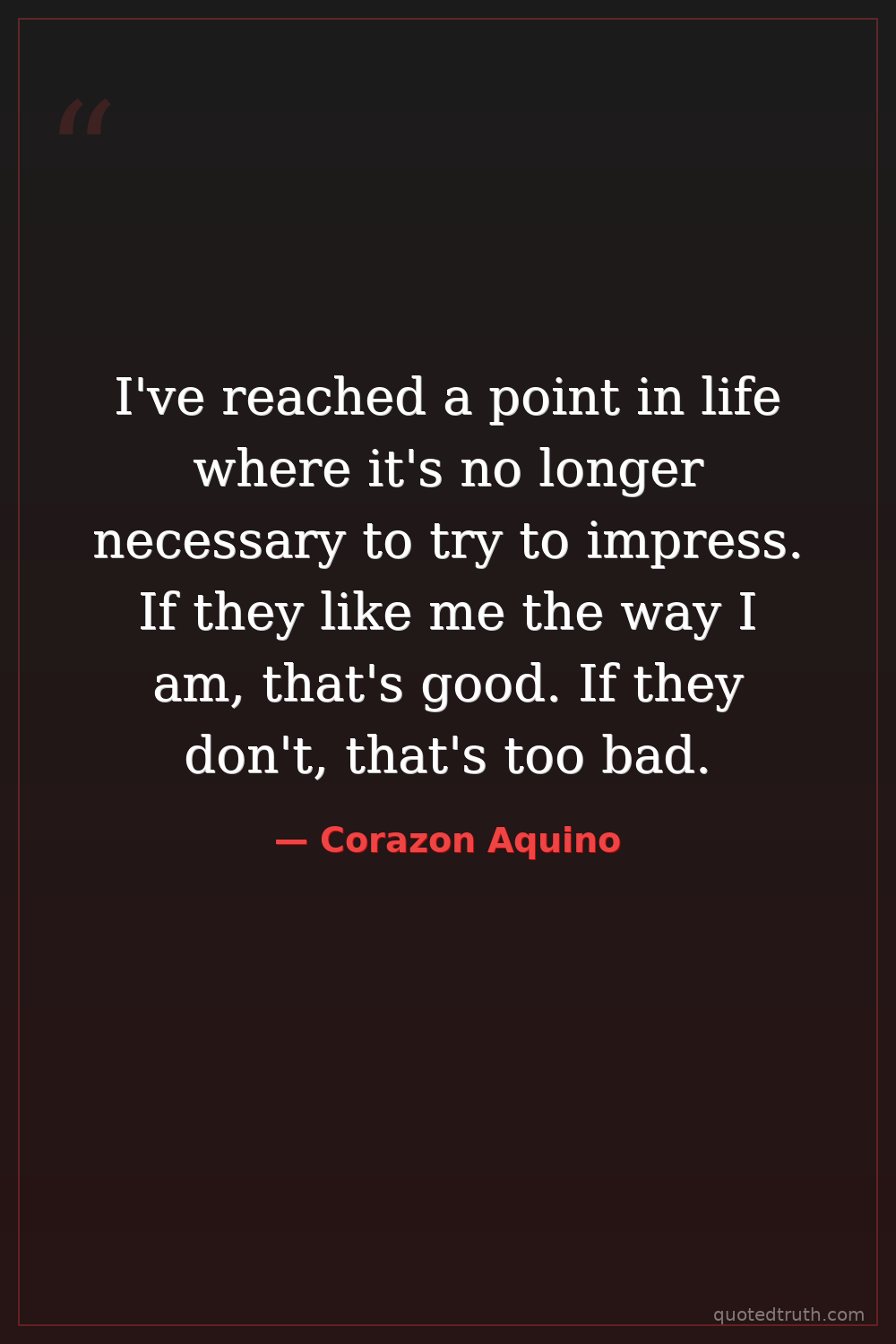 I've reached a point in life where it's no longer necessary to try to impress. If they like me the way I am, that's good. If they don't, that's too bad.