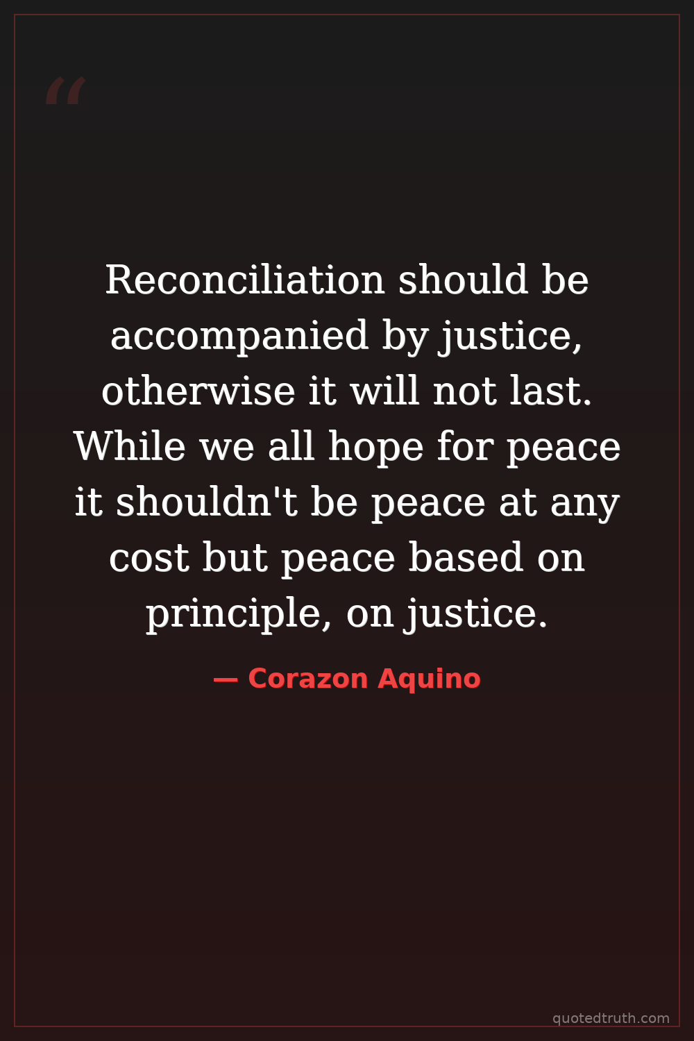 Reconciliation should be accompanied by justice, otherwise it will not last. While we all hope for peace it shouldn't be peace at any cost but peace based on principle, on justice.