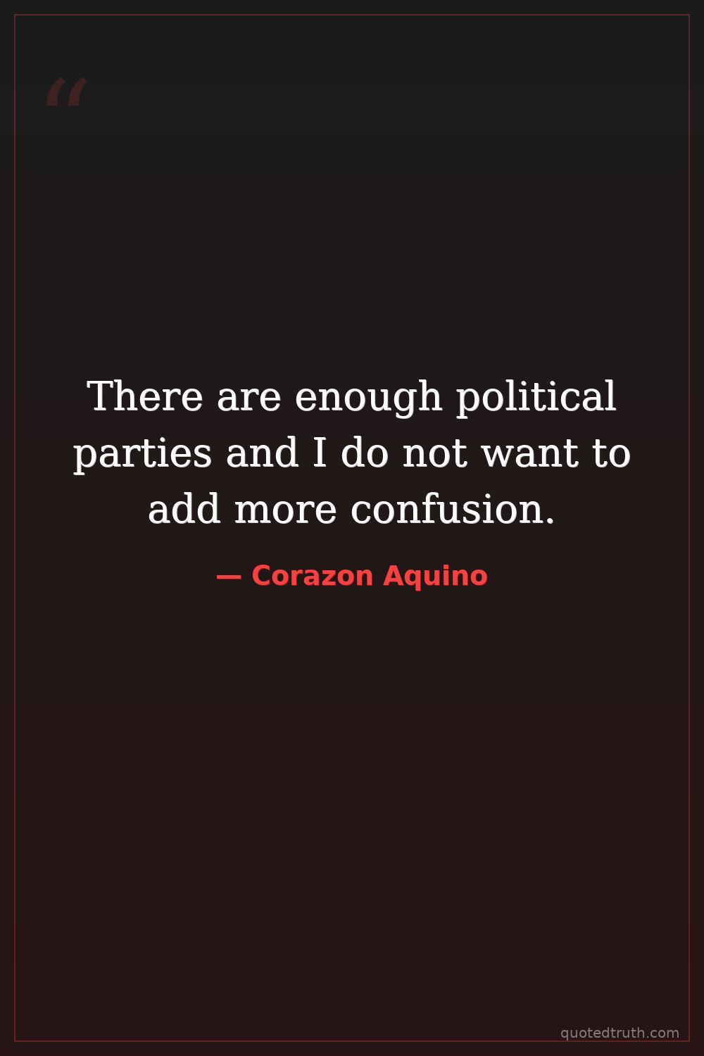 There are enough political parties and I do not want to add more confusion.