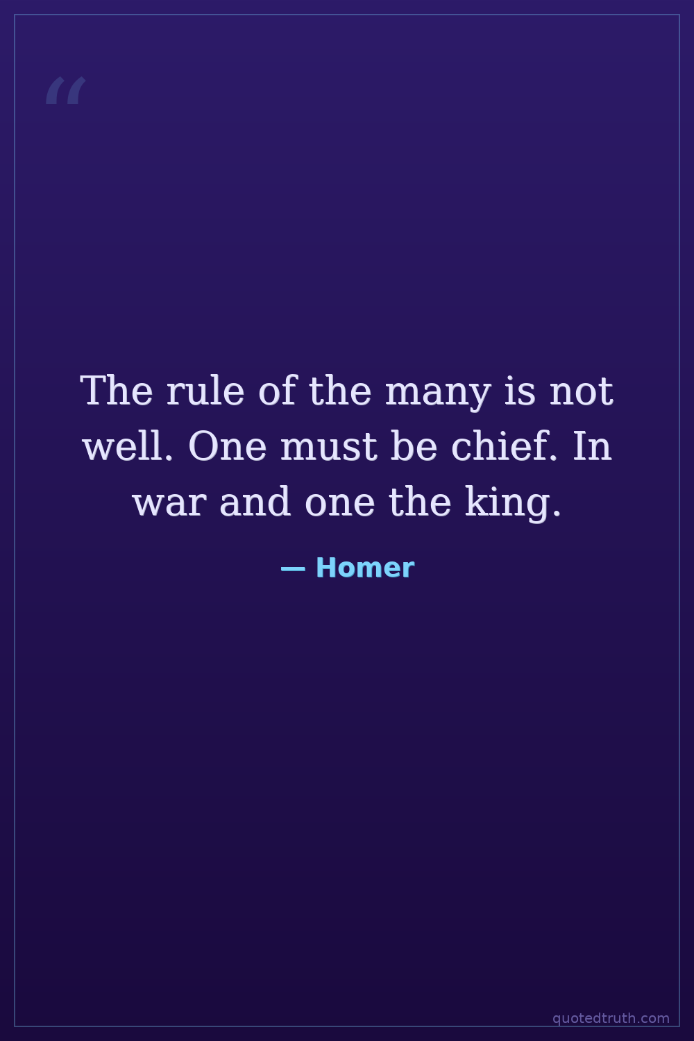 The rule of the many is not well. One must be chief. In war and one the king.