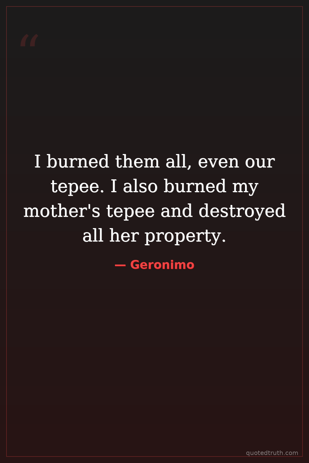 I burned them all, even our tepee. I also burned my mother's tepee and destroyed all her property.