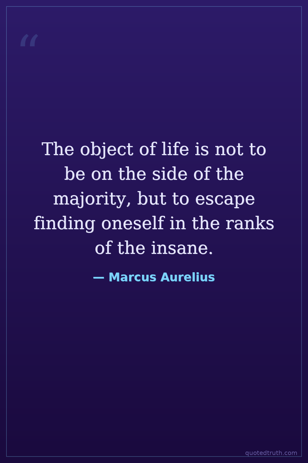 The object of life is not to be on the side of the majority, but to escape finding oneself in the ranks of the insane.