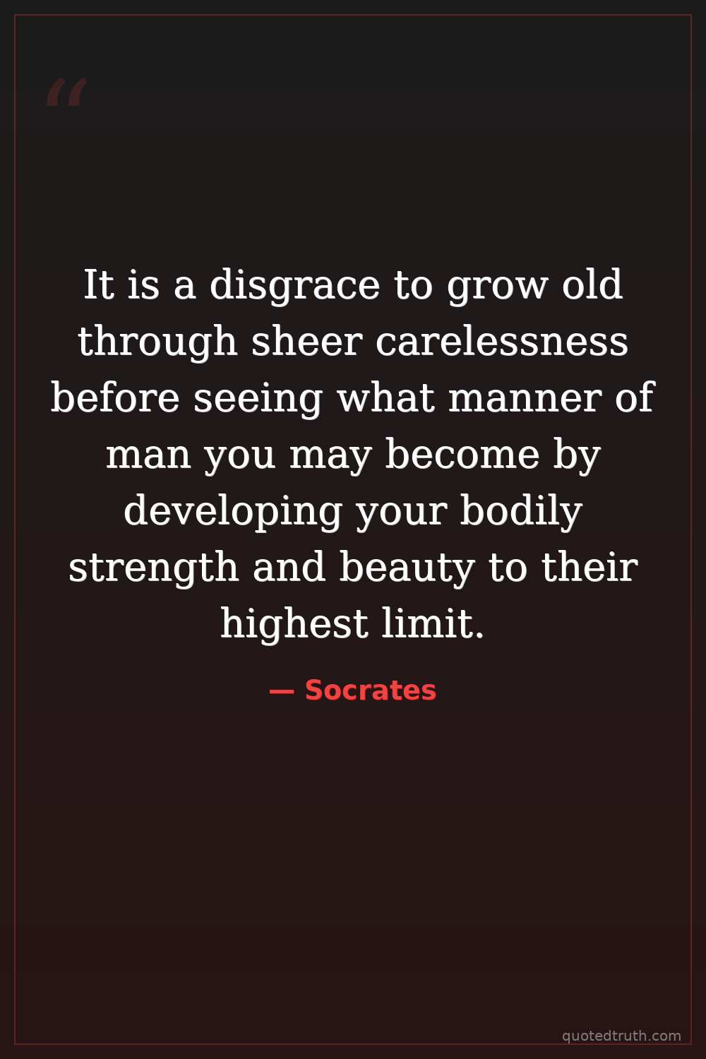 It is a disgrace to grow old through sheer carelessness before seeing what manner of man you may become by developing your bodily strength and beauty to their highest limit.