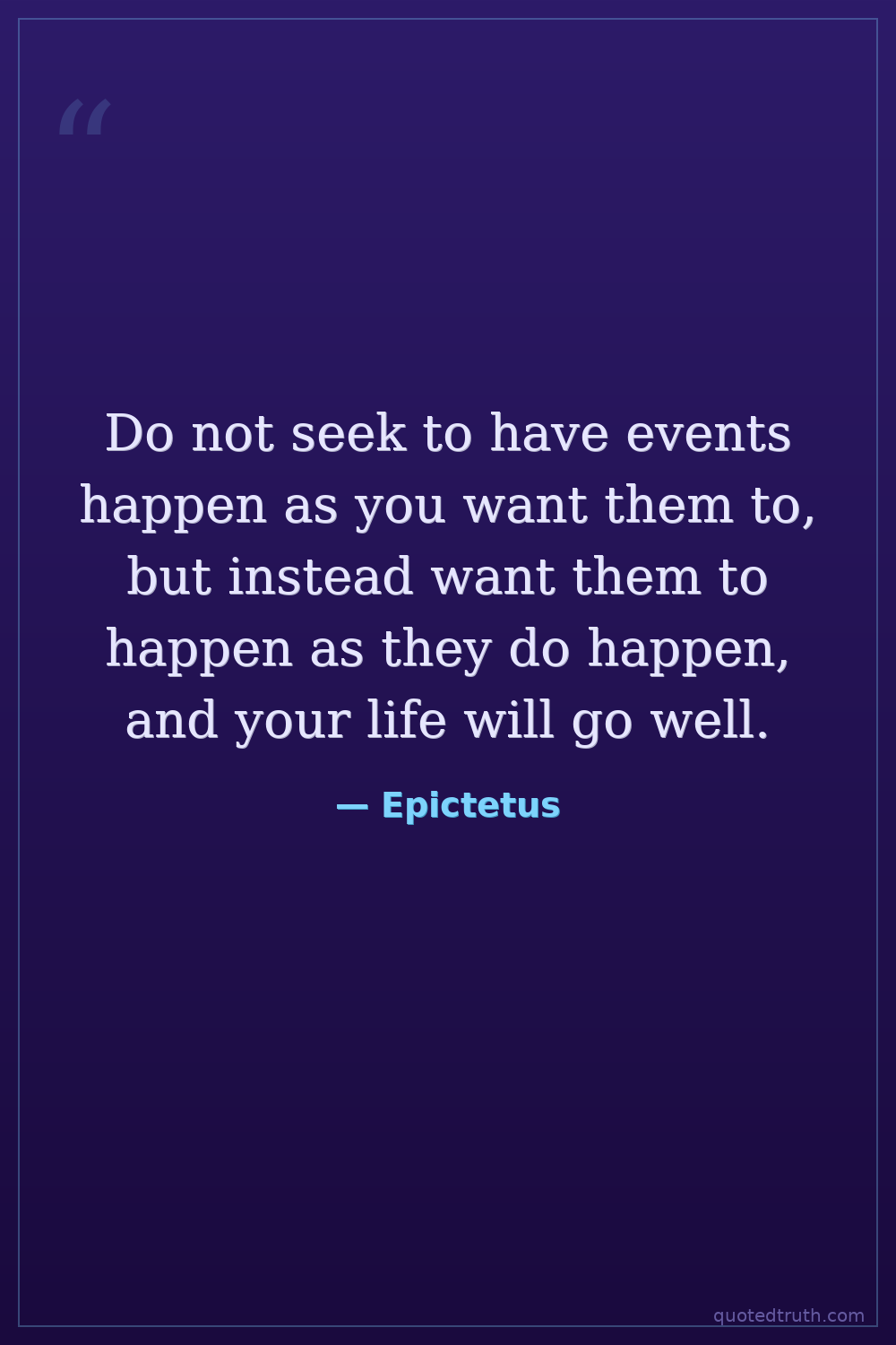 Do not seek to have events happen as you want them to, but instead want them to happen as they do happen, and your life will go well.