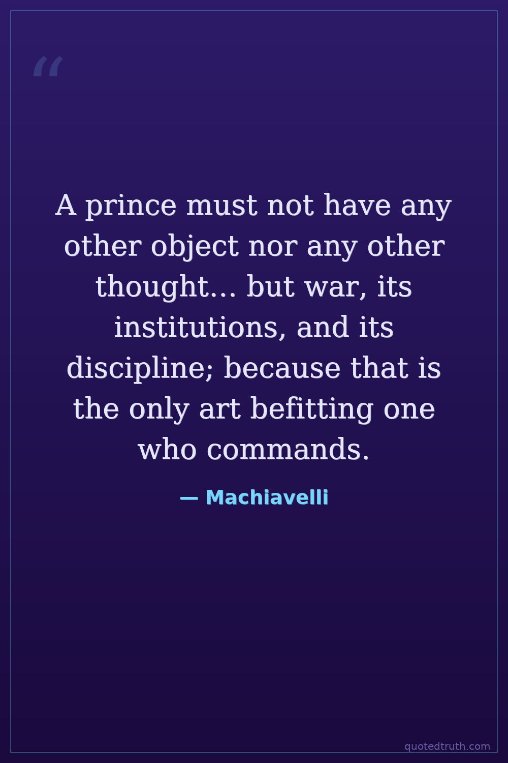 A prince must not have any other object nor any other thought… but war, its institutions, and its discipline; because that is the only art befitting one who commands.