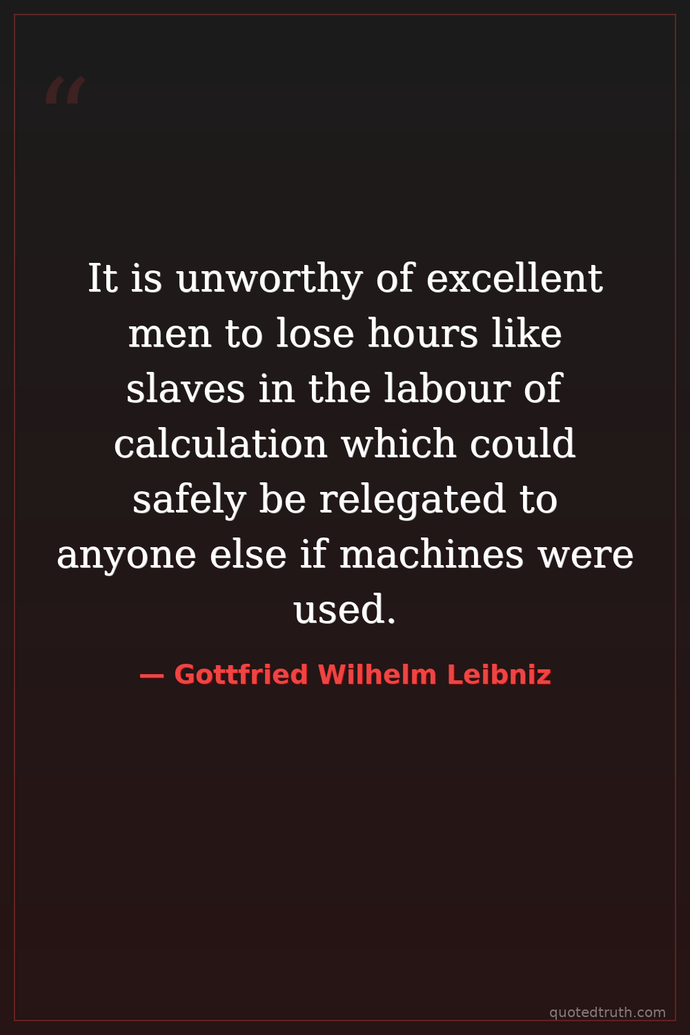 It is unworthy of excellent men to lose hours like slaves in the labour of calculation which could safely be relegated to anyone else if machines were used.