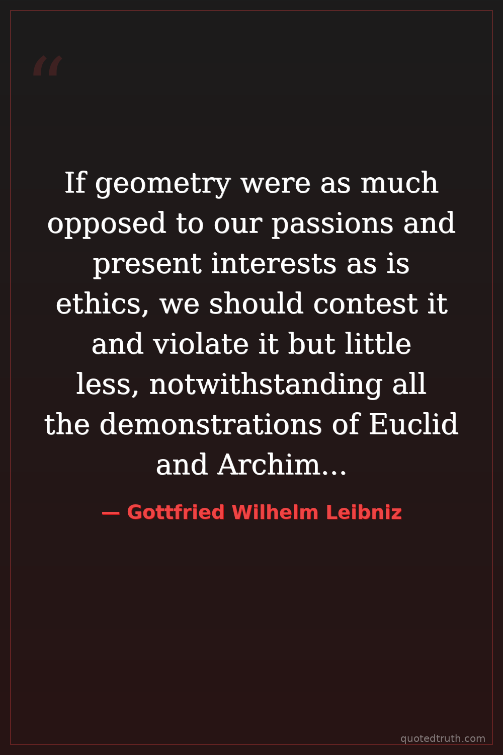 If geometry were as much opposed to our passions and present interests as is ethics, we should contest it and violate it but little less, notwithstanding all the demonstrations of Euclid and Archimedes.