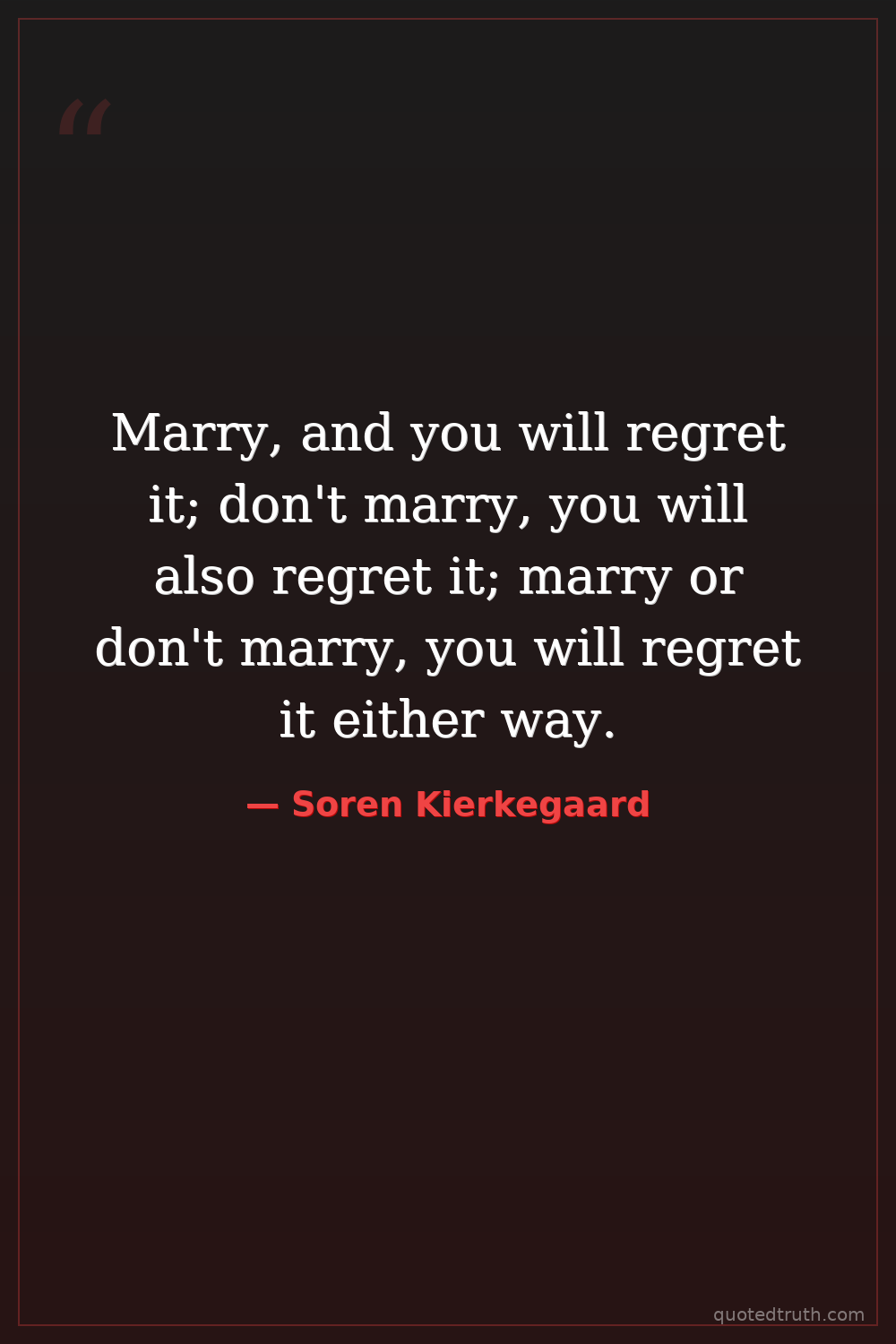Marry, and you will regret it; don't marry, you will also regret it; marry or don't marry, you will regret it either way.