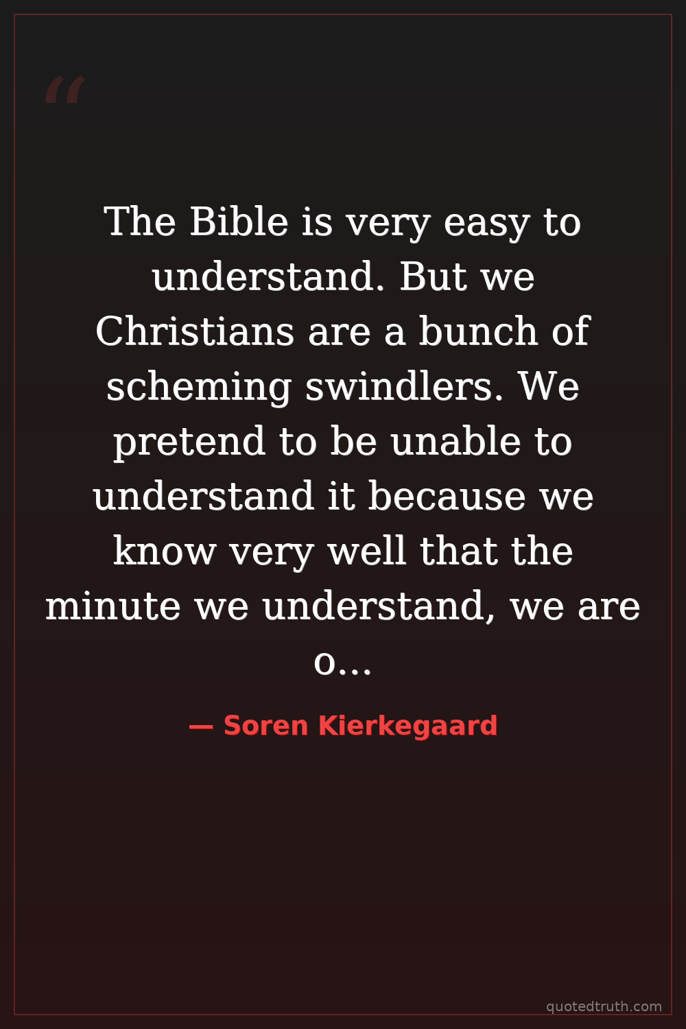 The Bible is very easy to understand. But we Christians are a bunch of scheming swindlers. We pretend to be unable to understand it because we know very well that the minute we understand, we are obliged to act accordingly.