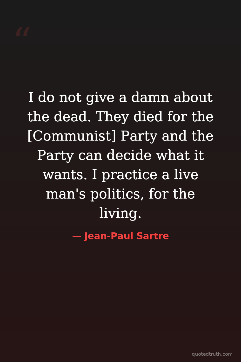 I do not give a damn about the dead. They died for the [Communist] Party and the Party can decide what it wants. I practice a live man's politics, for the living.