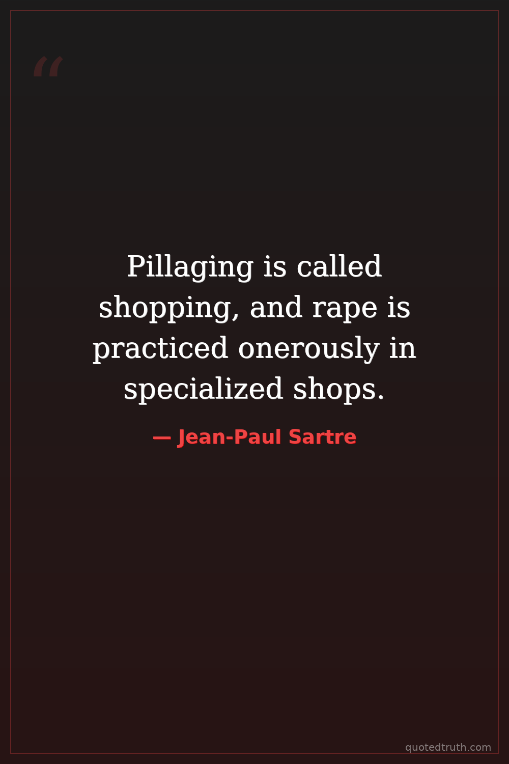Pillaging is called shopping, and rape is practiced onerously in specialized shops.