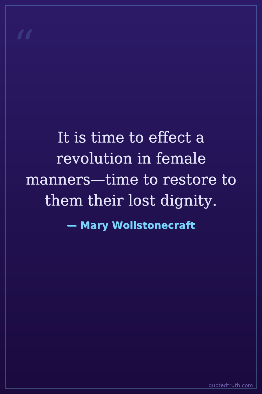 It is time to effect a revolution in female manners—time to restore to them their lost dignity.