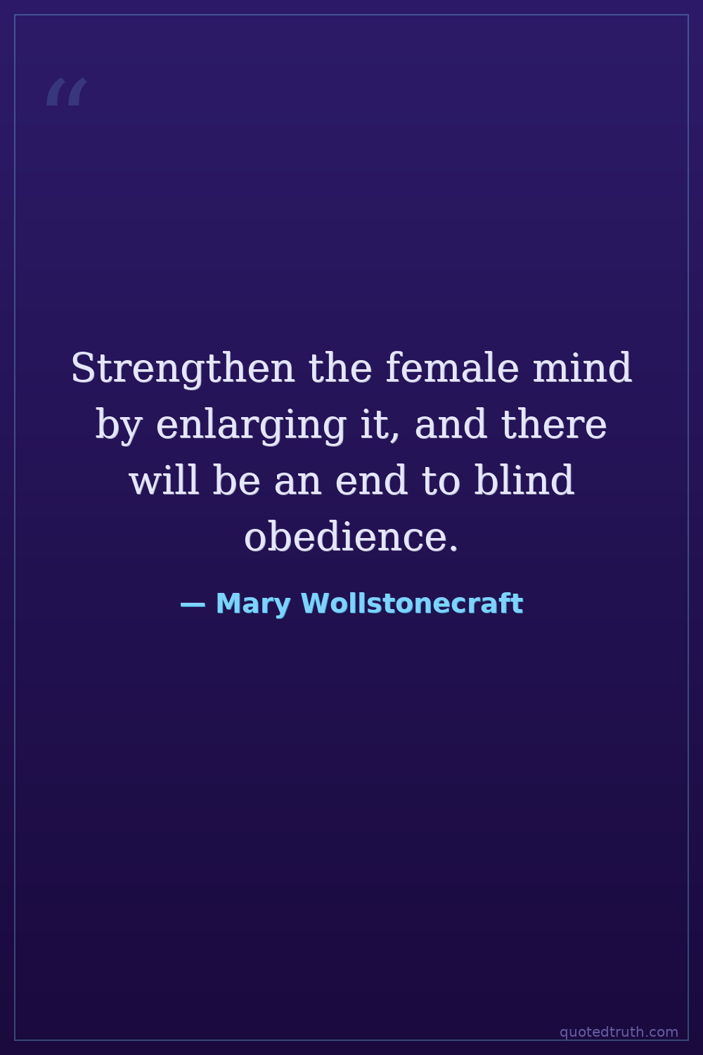 Strengthen the female mind by enlarging it, and there will be an end to blind obedience.
