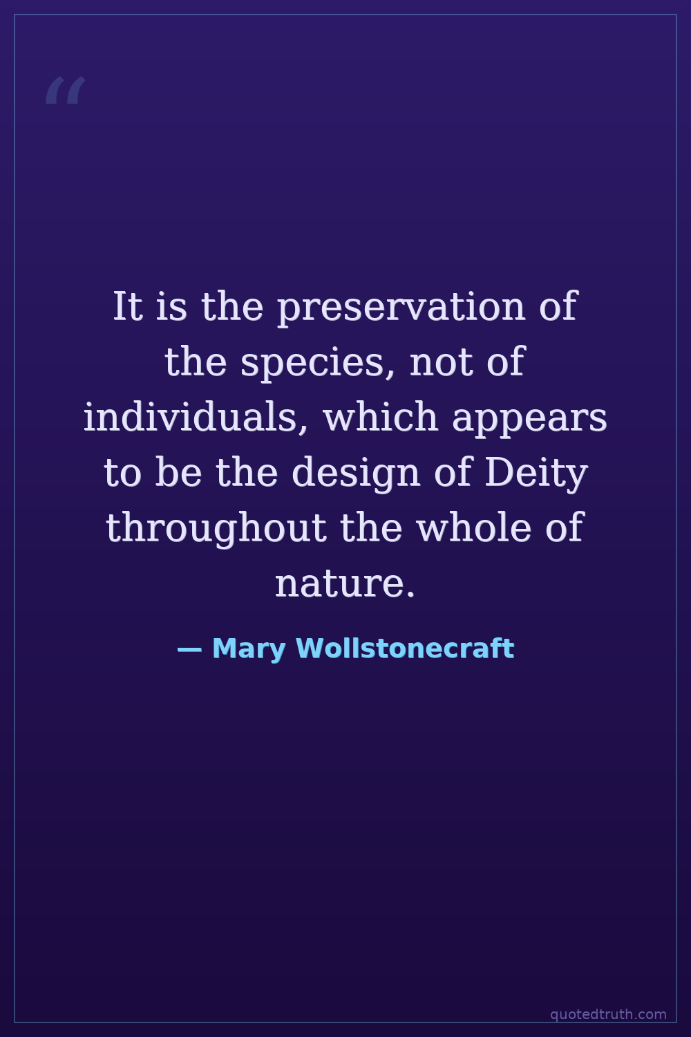 It is the preservation of the species, not of individuals, which appears to be the design of Deity throughout the whole of nature.