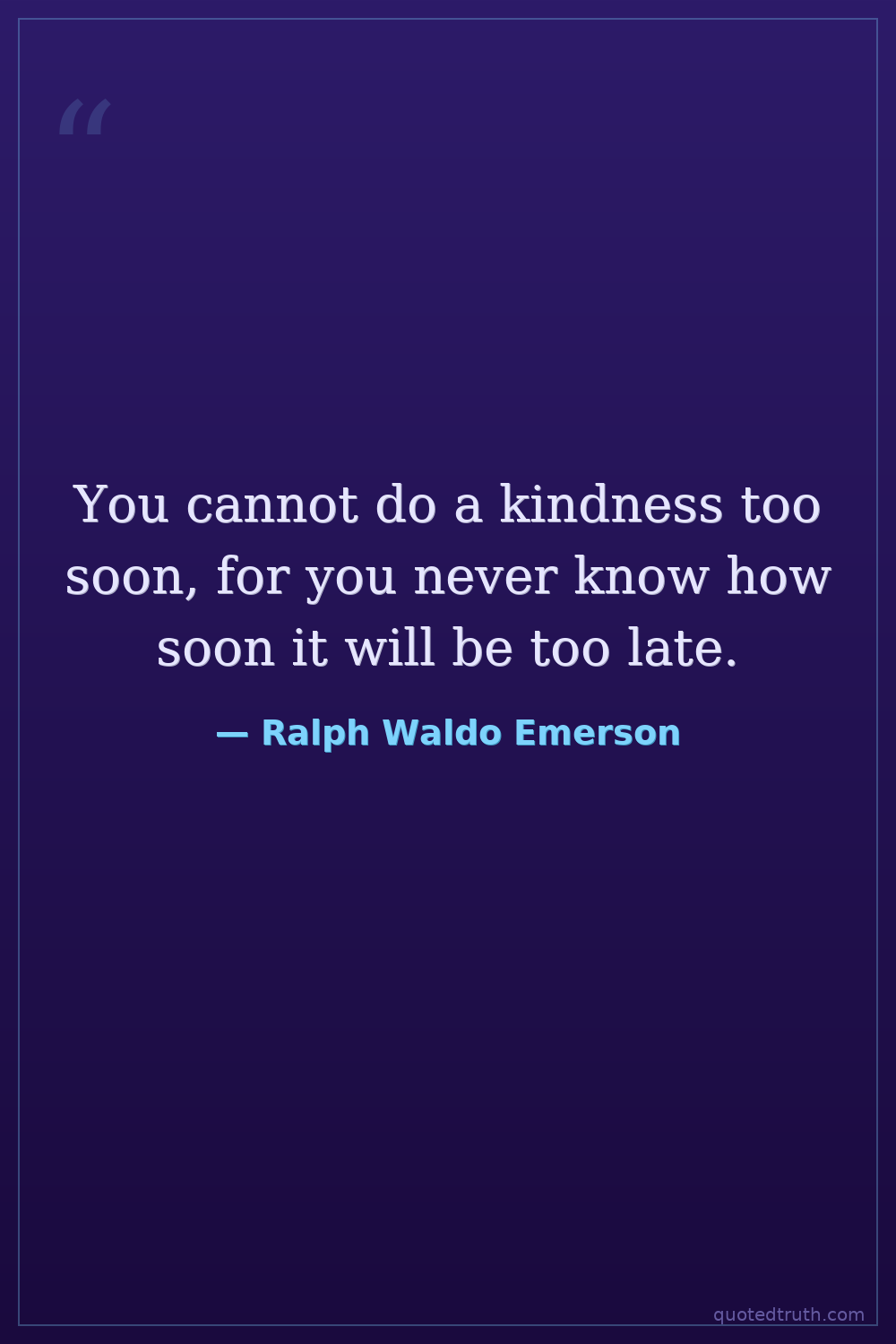 You cannot do a kindness too soon, for you never know how soon it will be too late.