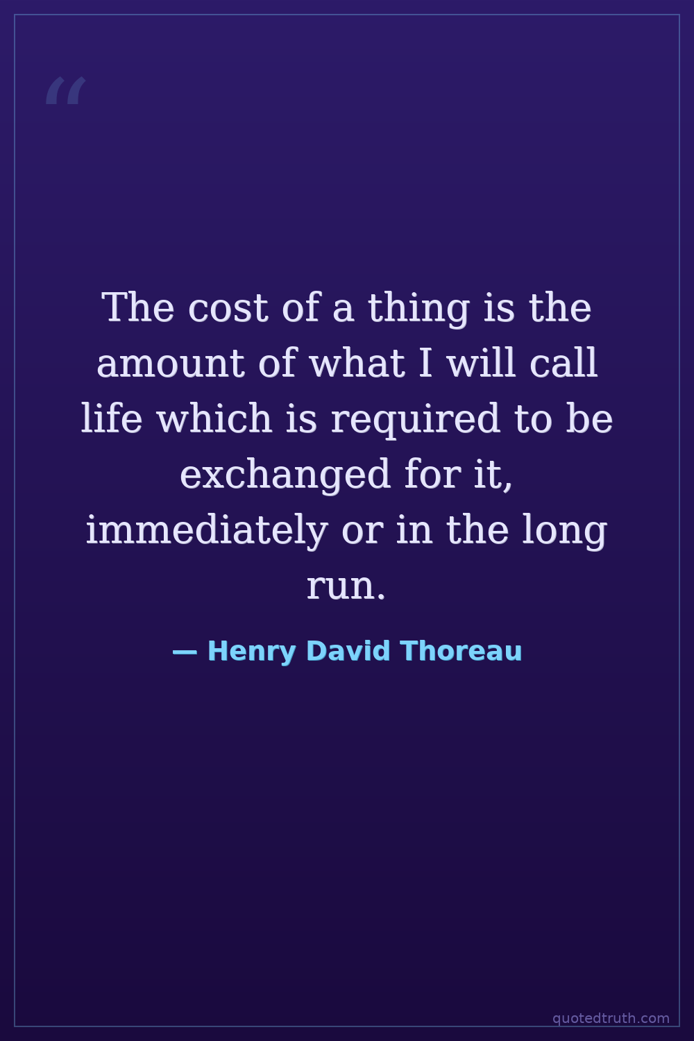 The cost of a thing is the amount of what I will call life which is required to be exchanged for it, immediately or in the long run.
