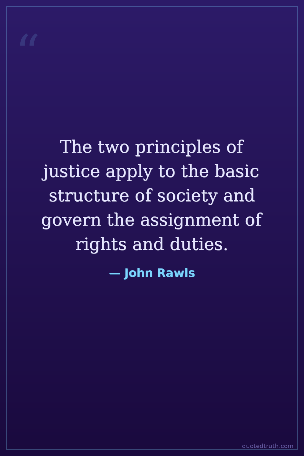 The two principles of justice apply to the basic structure of society and govern the assignment of rights and duties.