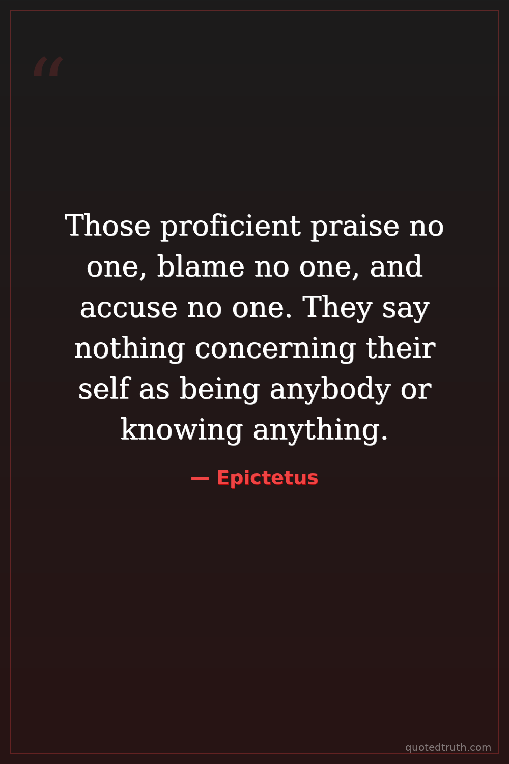 Those proficient praise no one, blame no one, and accuse no one. They say nothing concerning their self as being anybody or knowing anything.