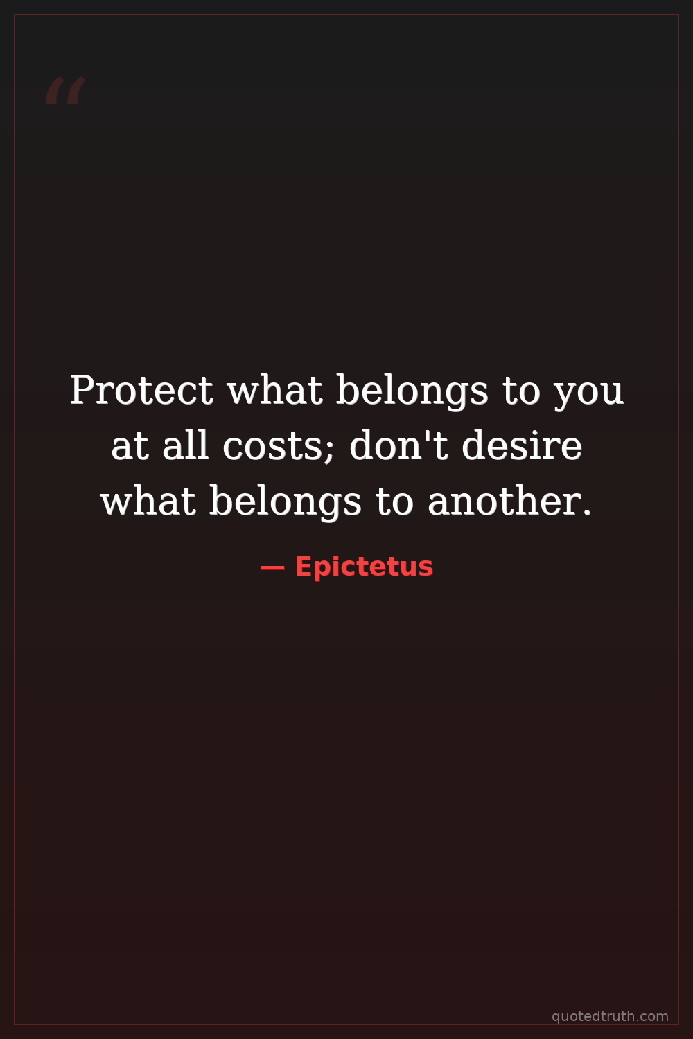 Protect what belongs to you at all costs; don't desire what belongs to another.