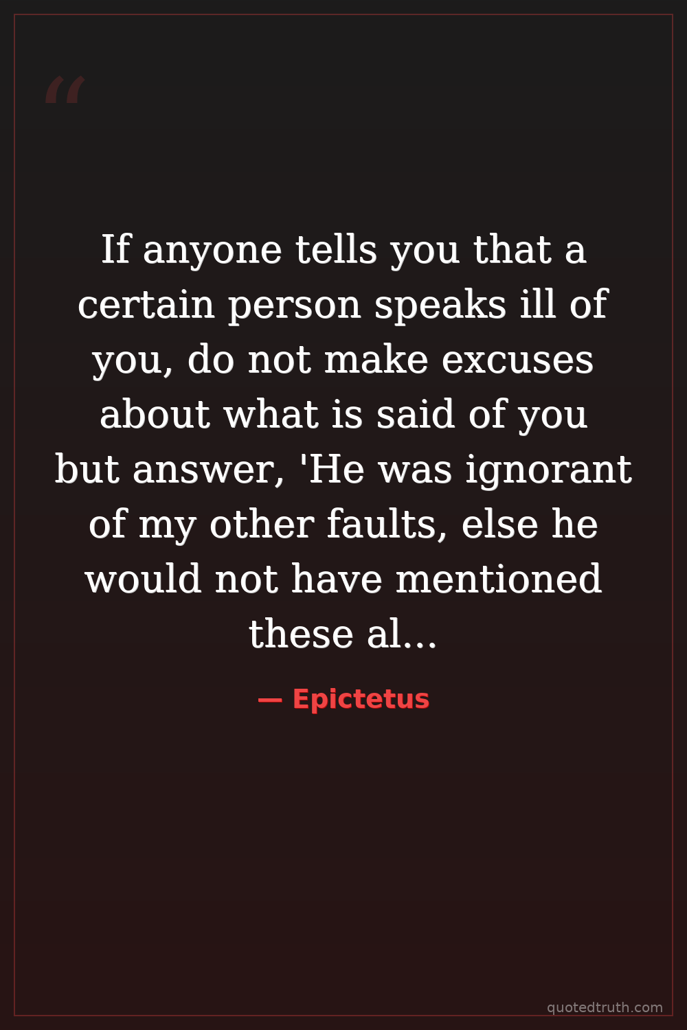 If anyone tells you that a certain person speaks ill of you, do not make excuses about what is said of you but answer, 'He was ignorant of my other faults, else he would not have mentioned these alone.'