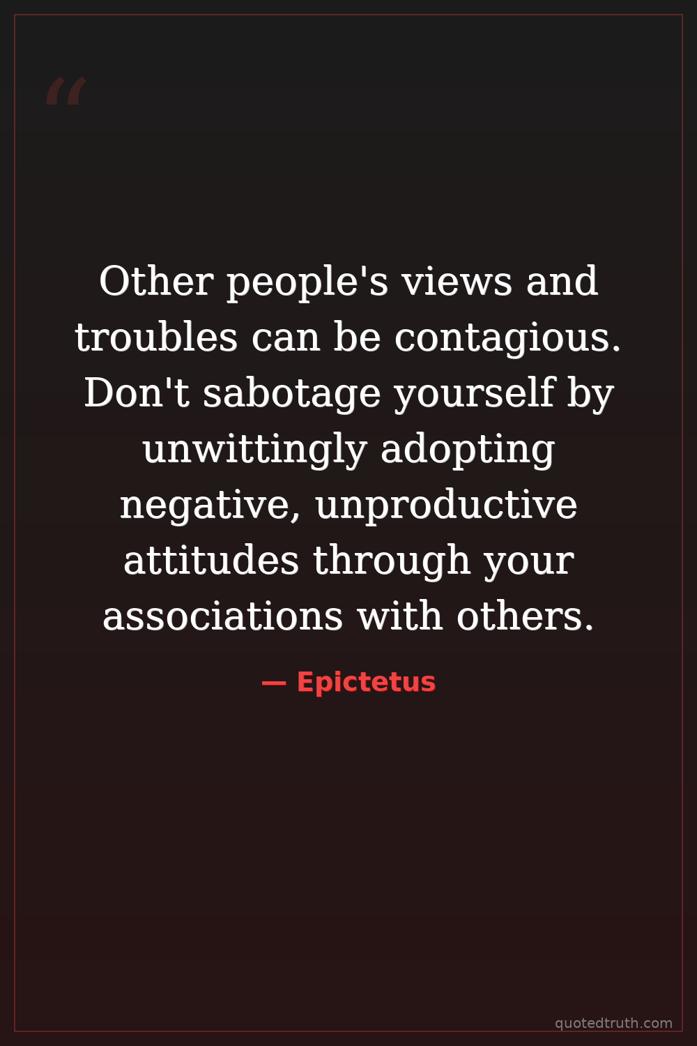Other people's views and troubles can be contagious. Don't sabotage yourself by unwittingly adopting negative, unproductive attitudes through your associations with others.