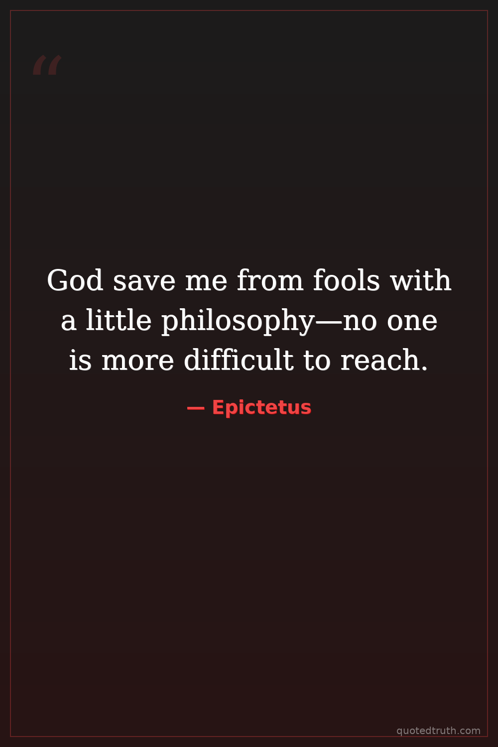 God save me from fools with a little philosophy—no one is more difficult to reach.