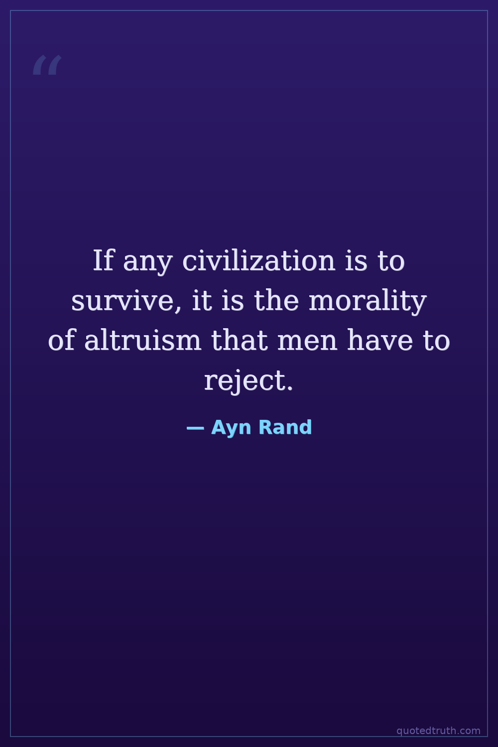 If any civilization is to survive, it is the morality of altruism that men have to reject.