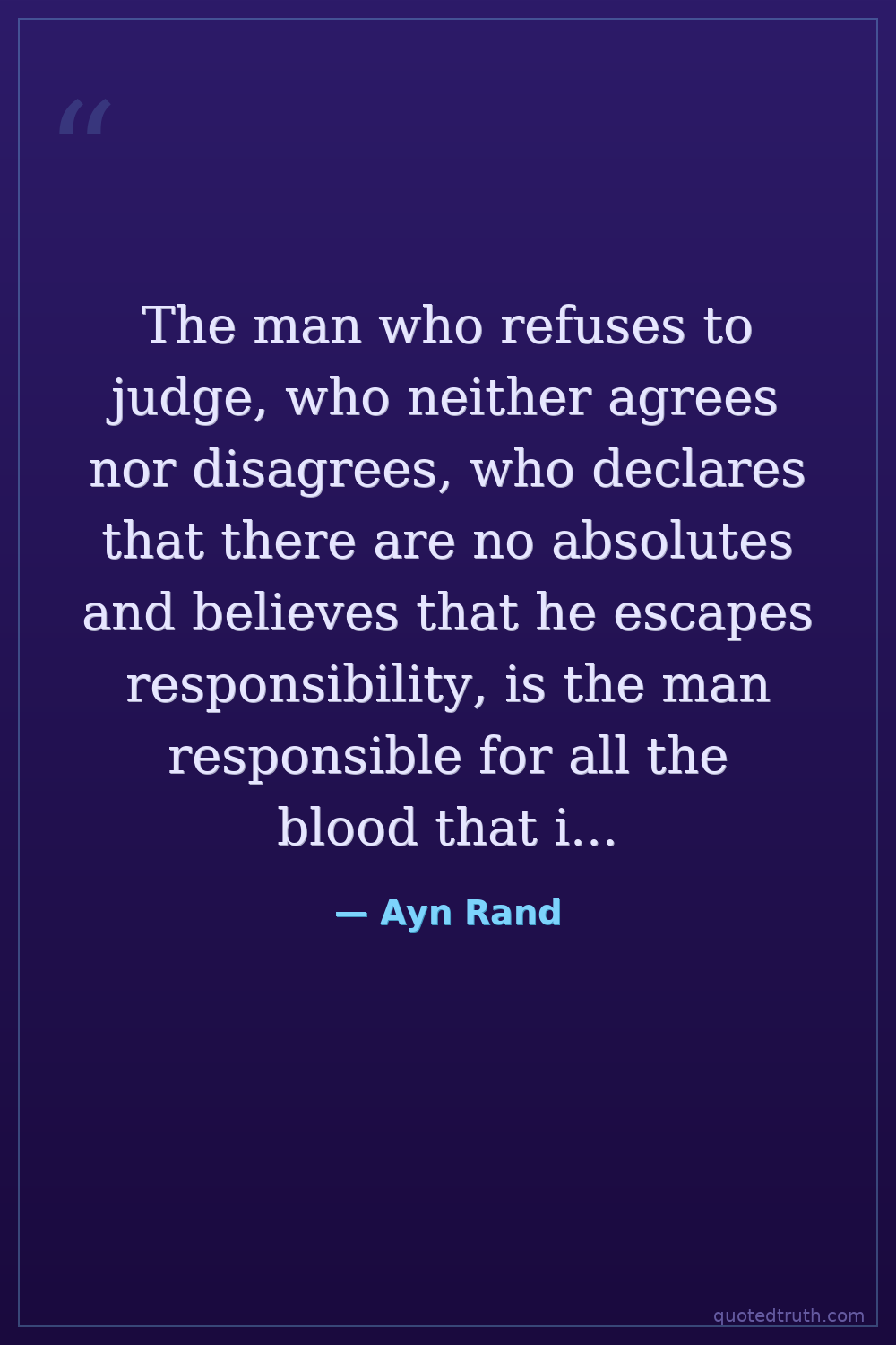 The man who refuses to judge, who neither agrees nor disagrees, who declares that there are no absolutes and believes that he escapes responsibility, is the man responsible for all the blood that is now spilled in the world.